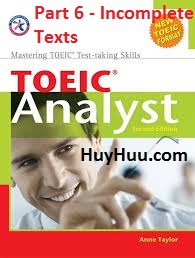 This is the study video for "Toeic Analyst 2nd Edition - Part 6 - Incomplete Texts" made by HuyHuu Team.